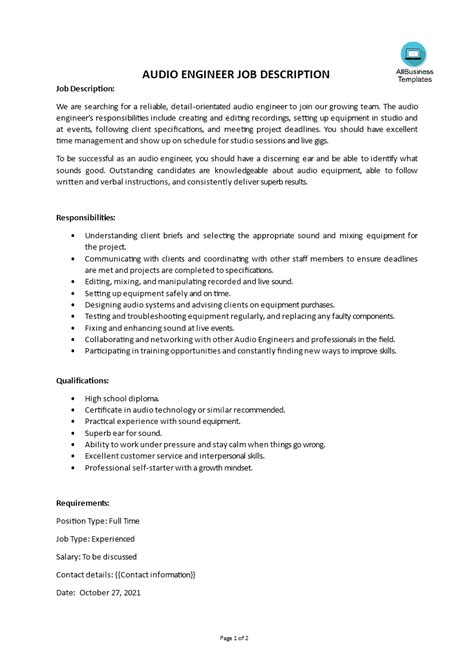 Audio engineers are responsible for capturing, manipulating, and reproducing sound. They work with a variety of equipment, including microphones, soundboards, amplifiers, and recording software to achieve the desired sound quality. Their job duties may include: